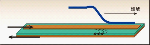 图1是一个阶跃讯号在传输线(如PCB走线)上传输时的示意图。而传输线是透过电介质与GND分隔的,就像无数个微小的电容器并联。当电讯号到达某个位置时,就会使该位置上的电压产生变化,如同为电容器充电。由于传输线在此位置上具备对地电流回路,因此会产生阻抗。但该阻抗只有阶跃讯号自身才能感觉到,这就是所谓的特征阻抗。