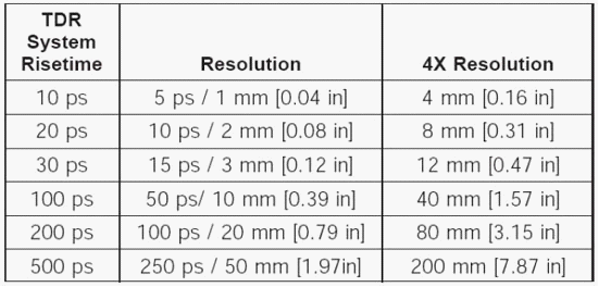 Resolution= (tsys*V)/2,V为电讯号在被测试传输线上的传输速率。