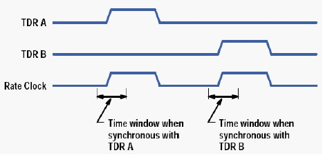 在这种‘伪差分TDR’设备荧幕上,往往会经过人为的软件调整,让我们看到同时发出且方向相反的阶跃讯号。